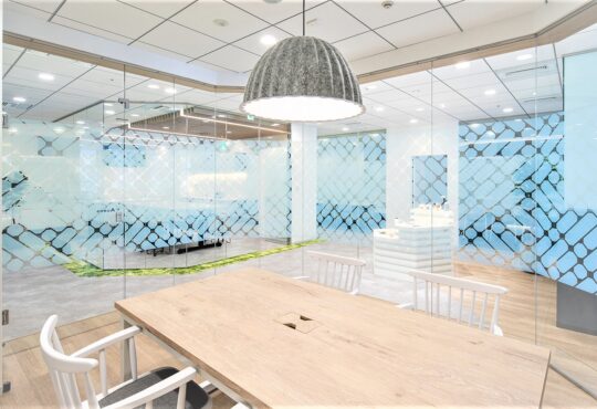 The film stuck on glass adjusts light transmission, makes stylish space. Glass with the film is milky translucent like a mist, good for privacy protection. It can make comfortable space in homes, restaurants, offices, and factories.